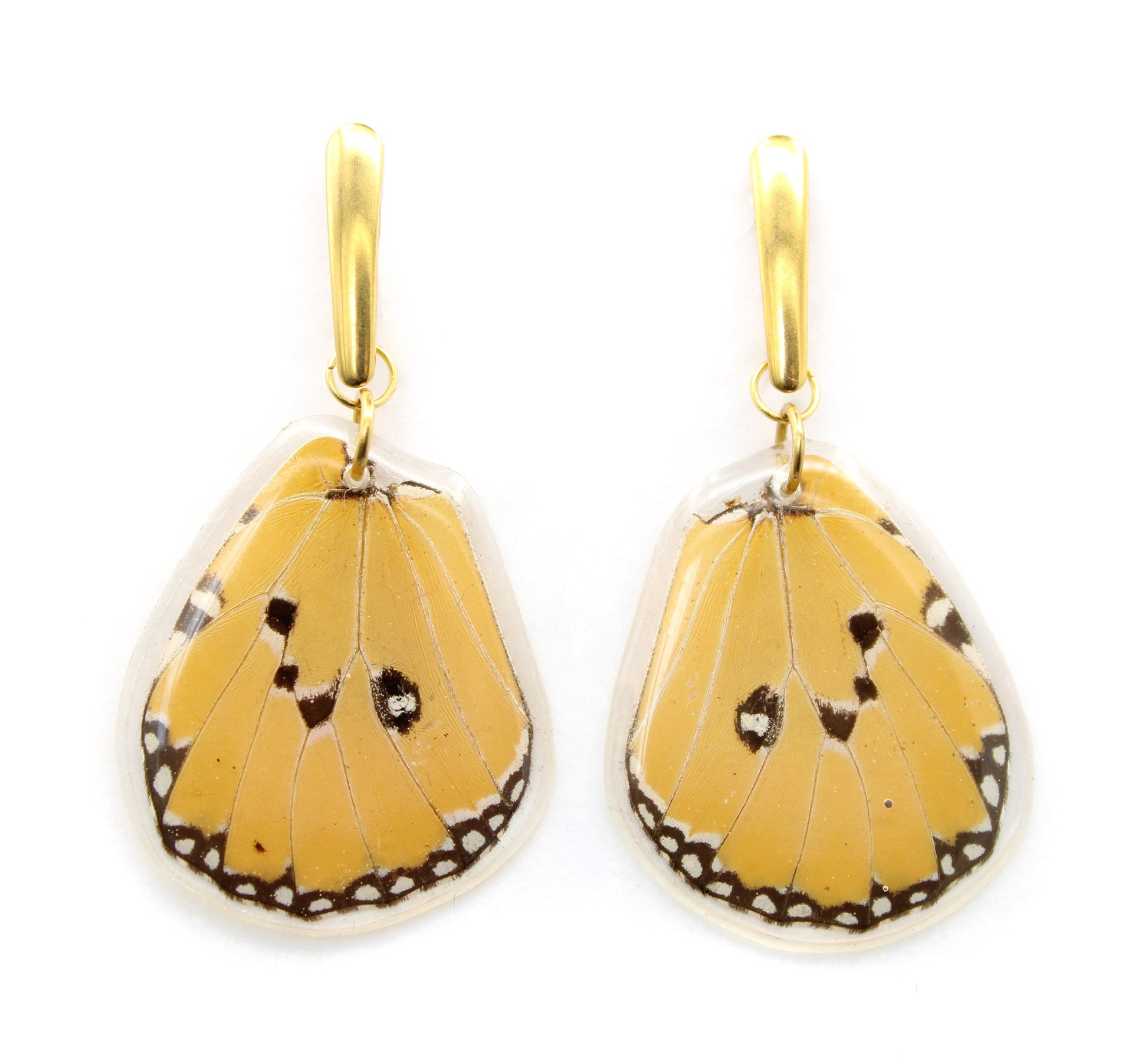 Earrings made with real wings of the African Monarch butterfly (Danaus chrysippus).